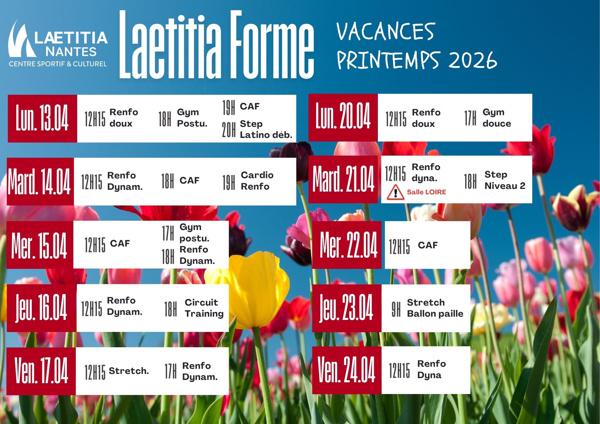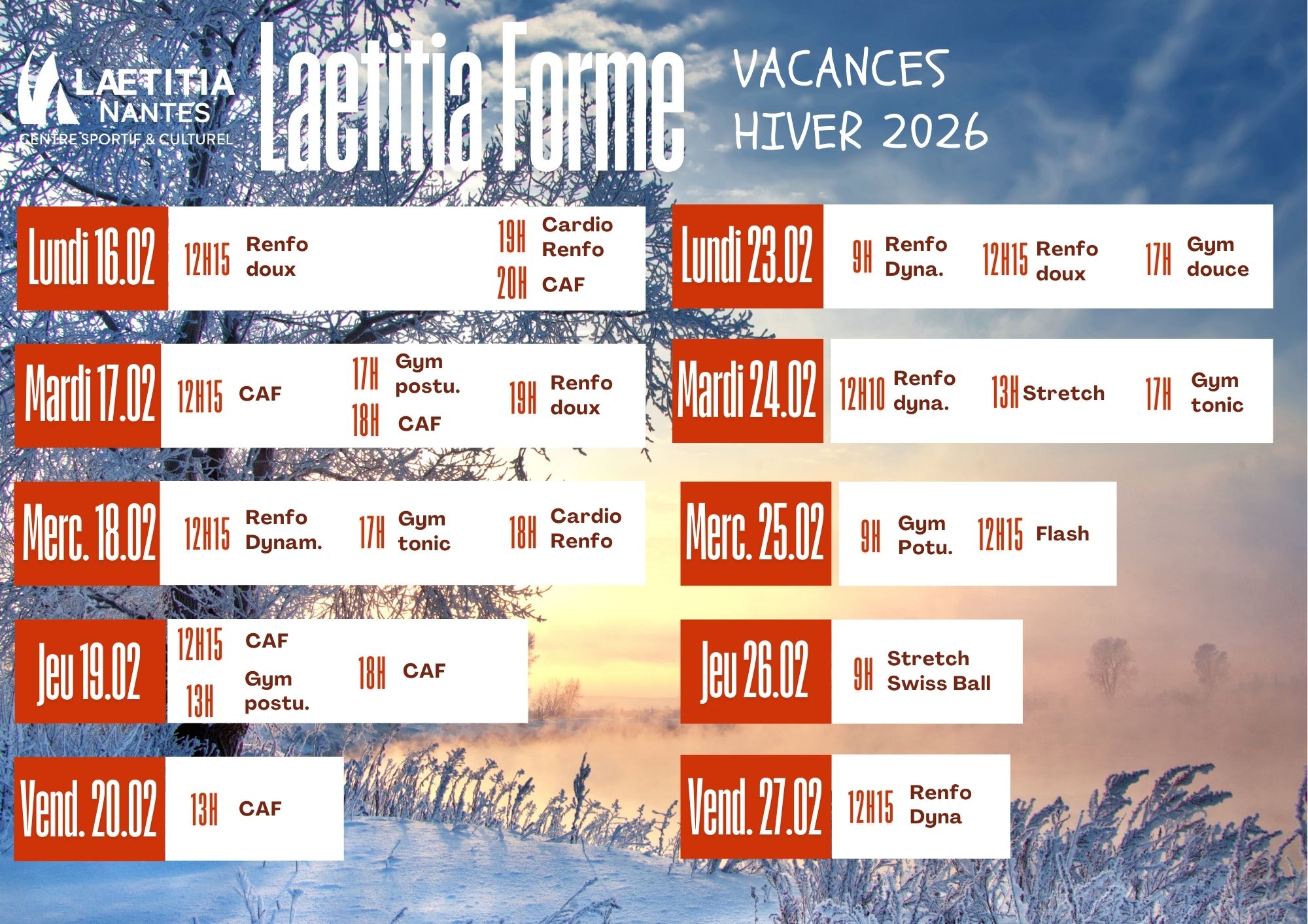 PLANNING DES COURS VACANCES FEVRIER